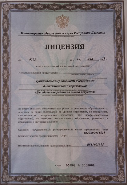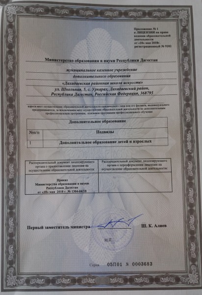Полное наименование образовательной организации* Муниципальное бюджетное учреждение дополнительного образования " Районная детская школа искусств" МО "Дахадаевский район"